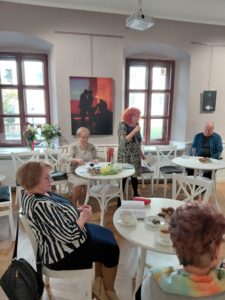 W pierwszej części Małgorzata Pomorska, poetka, malarka, pianistka, wieloletnia członkini Apostrofy czytała swoje wiersze, ilustrowane muzycznymi utworami w jej wykonaniu. Uczestnicy spotkania z uwagą słuchali wierszy inspirowanych podróżami i przemyśleniami nad przemijaniem. Autorka zajmuje się w swojej twórczości również sprawami współczesnego świata i człowieka.